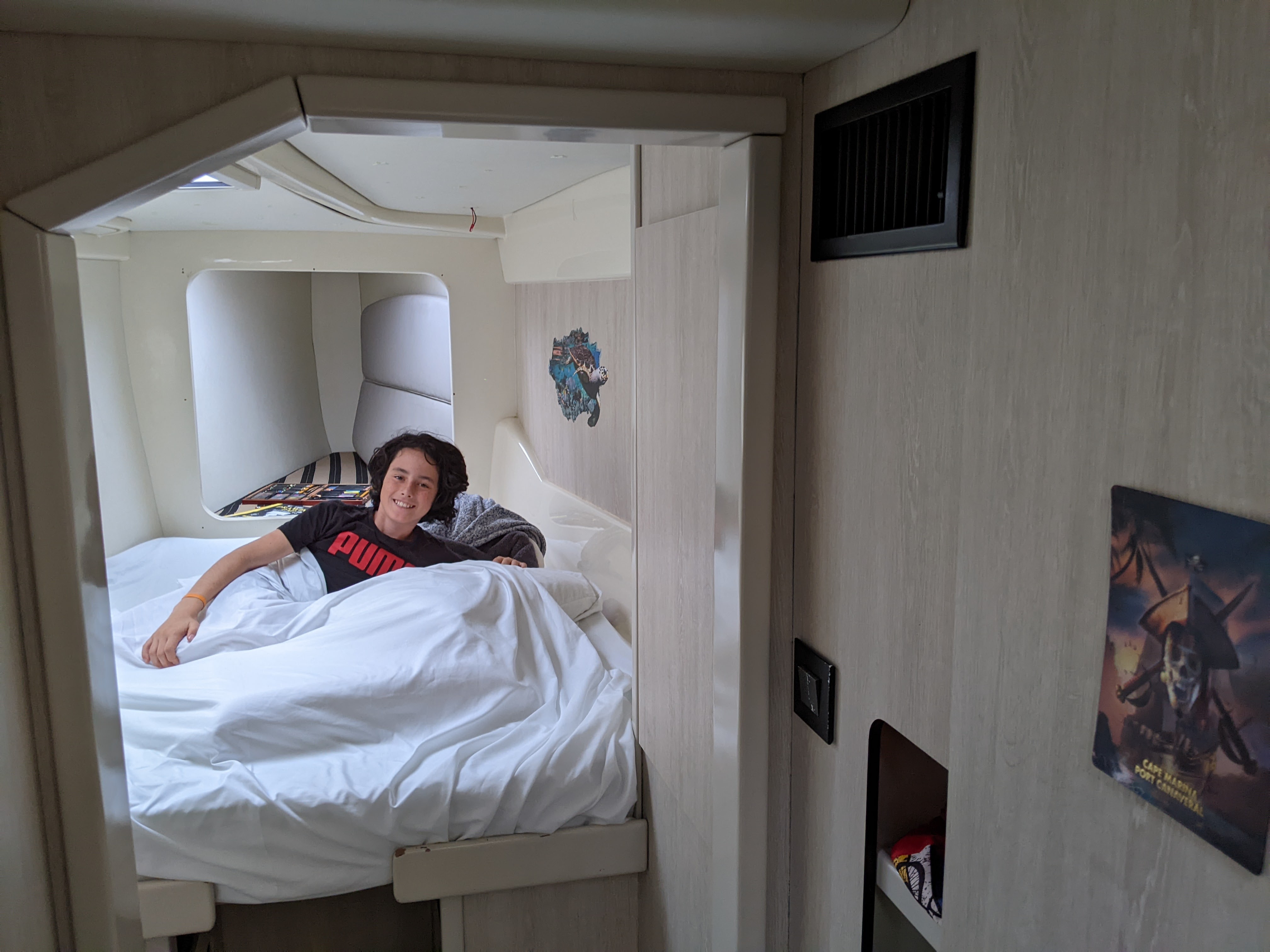 Glad Richard was so much help/benefit in the “Getting Ready” and Ins. part of the trip. He’s a real nice guy. Especially glad the rope broke after Tommy shimmied up the mast and Before you set sail to the Bahamas. Love the boy’s rooms!