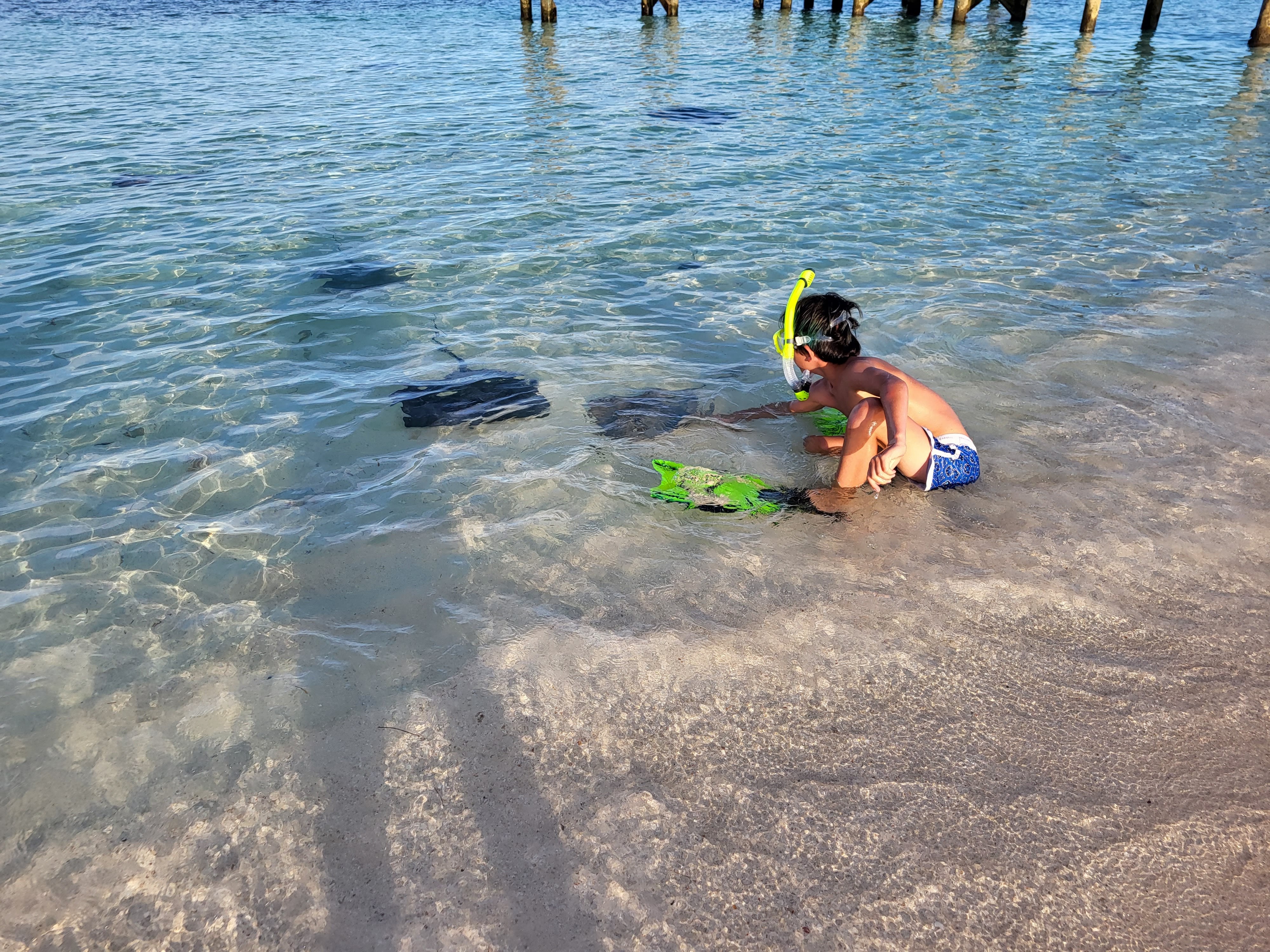 We sailed with our new friends on Adiona to an anchorage off of Gun Cay, where we found a wonderful, private little cove with a reef and rays who would approach and let you pet them. Jackson harvested a conch for us and we planned to make ceviche.