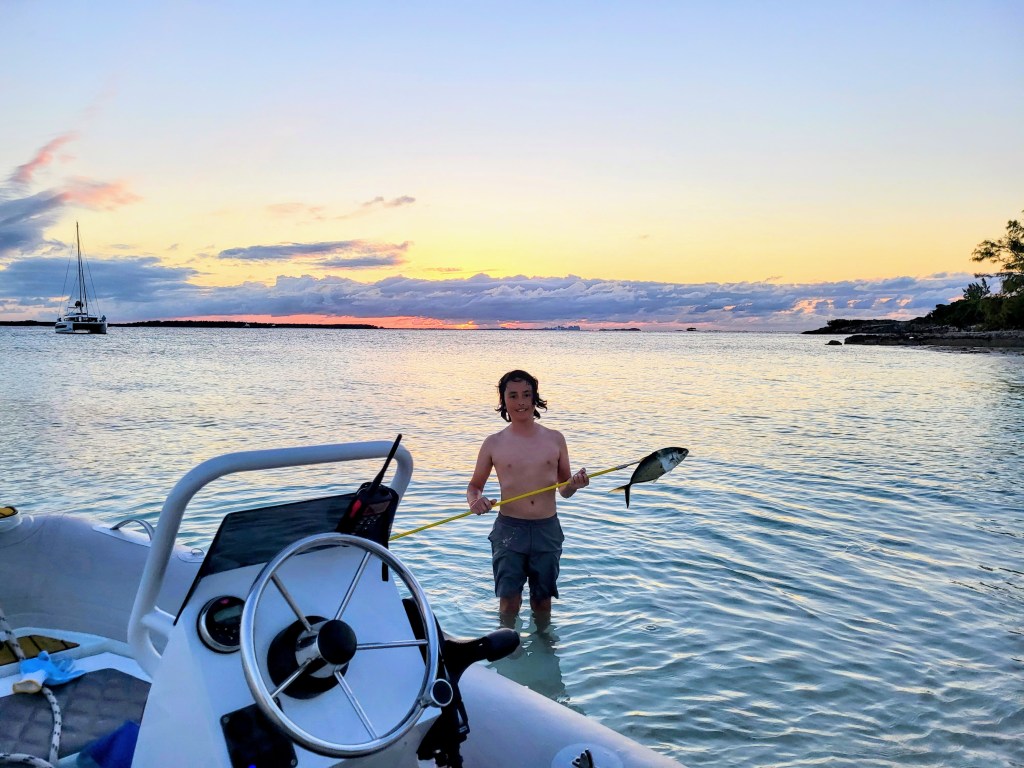 After Nassau we stopped at Green Cay, a tiny little island just moments from Nassau. We anchored there and had a lovely night on the beach. Spencer played in the sand and Jackson took out his brand new spear and got a jack for dinner. Great little spot to decompress.