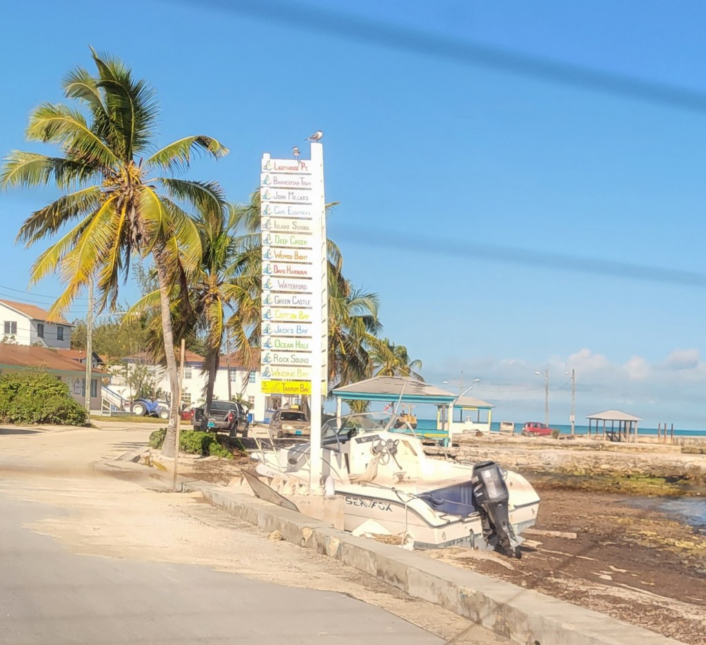 Tommy texted that he and the boys had arrived outside of Governor’s Harbour and had set the anchor, but not very well. I felt like I needed to meet back up with them to get the hook down properly so we could feel really settled and secure. W started driving towards our boat where we saw my family walking to town in search of ice cream, so we pulled over and I jumped out, said our good-byes, and re-joined my family. The other women went to lunch and a few other attractions, making the most of the rental car time. I dropped off the bread and produce at the boat and we walked into town where the boys got ice cream and I had a very late lunch. Governor’s Harbour has some beautiful old buildings and a really comfortable, friendly vibe. It’s hilly and lush, with flowers blooming everywhere.