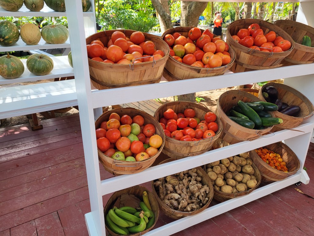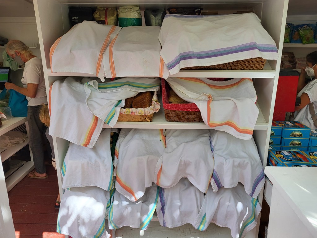 While Tommy, the boys, and Morris sailed north to a new anchorage, I got in a rental car with four of the other women who are traveling with our group. We visited Island Farm first (before they sold out of bread and other popular items), which was a huge treat. It’s a beautiful farm and store, where they bake delicious bread on Tuesday and Saturday and grow all organic crops. The farm store has homemade quiches, soups, salsa, marinades, jams and other items as well. We really wanted to buy the beautiful lettuces they had, but knew that they would not make it through the day in a hot, hot car. We were like kids in a candy store and couldn’t stop smiling and marveling at all the beautiful produce. We stocked up on all the things and then set off to take advantage of the car for a day.