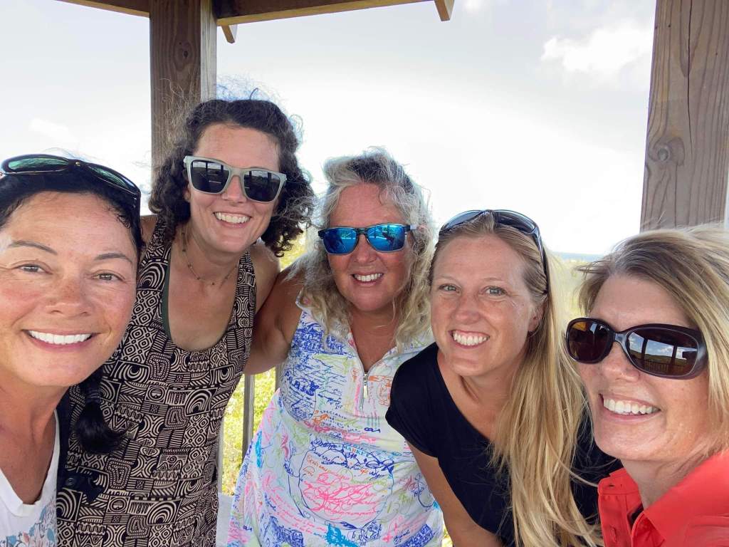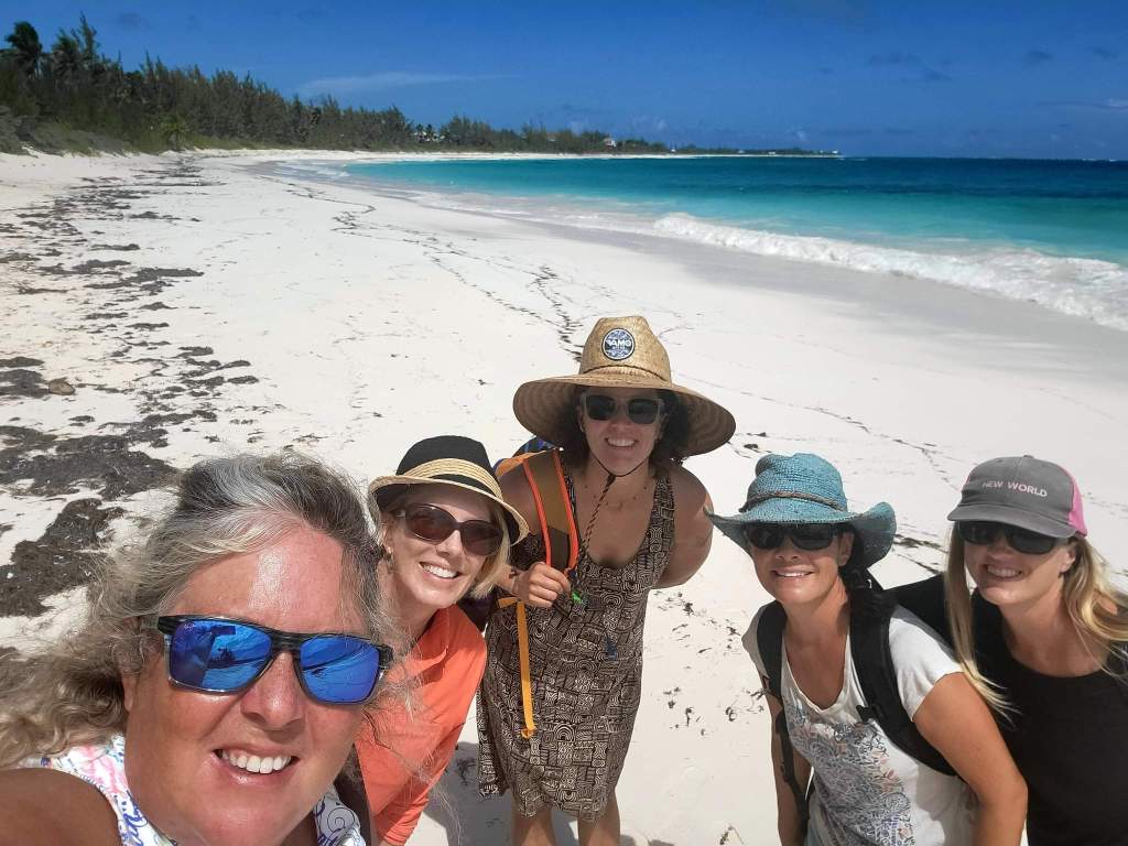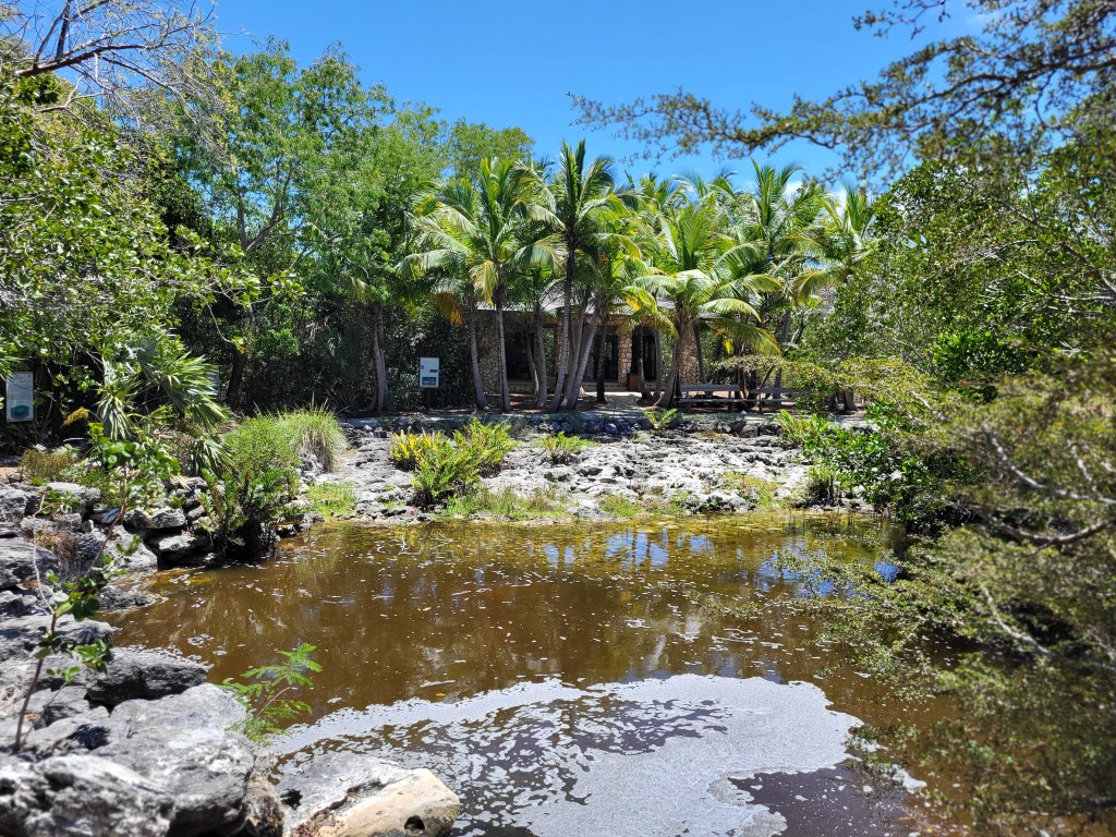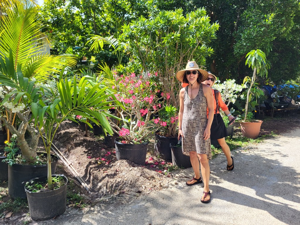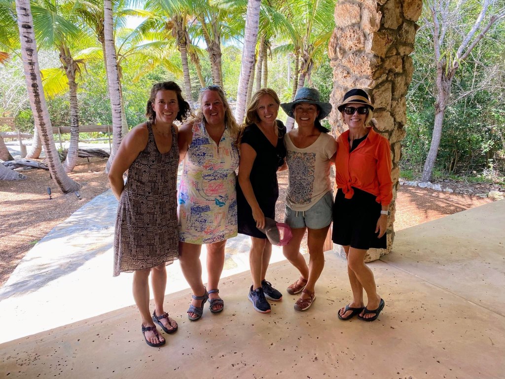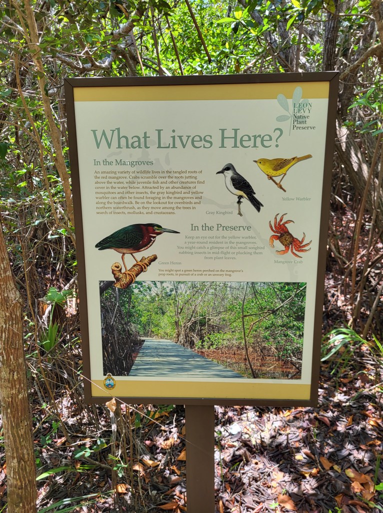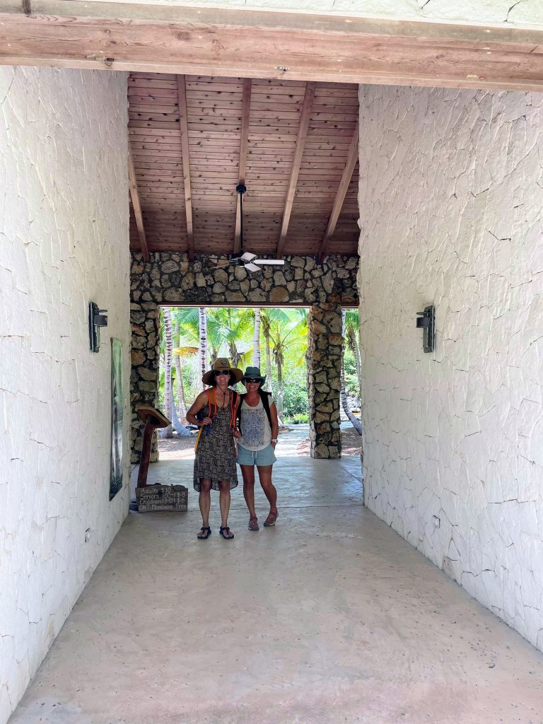I read briefly about the Levy Nature Preserve nearby and Susie and Andrea spotted signs for it, so we headed to see that next. It’s amazing how quickly you can do everything if you have a car! We drove to the nature preserve which had a lovely parking area where each car got their own little shady pull-in spot, and a beautiful visitor’s center. The preserve was set up so that you could take a self-guided walking tour/hike around the property and see all the plants and read all the signs with information about the native and non-native plants and birds. The hike leads to the top of a hill with a tall platform, up a few flights of stairs. The 360° view over the trees and all the way to the ocean was breathtaking, as was the swaying of the platform in the wind! We took some photos and continued on one of the best hikes I’ve been on. It looped back to the visitor’s center, past the medicinal plants section, the poisonous plants section, edible plants, and a lovely reproduction of a Lucayan hut. The Lucayan people went extinct in a single generation after Columbus arrived, due to slavery and disease.