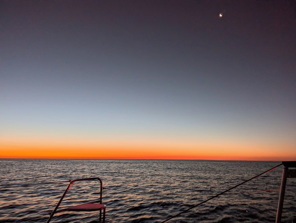 Tommy has a hard time waiting around. Anyone who knows him knows this, so you would think I would have seen it coming. We planned to leave on Tuesday “at sunrise” so that we could arrive in the Bahamas on Wednesday “at sunrise”, because we didn’t want to arrive and anchor or navigate a marina in the dark after a 24 hour sail. However, when Tommy couldn’t sleep at 5:30 am (definitely not “at sunrise”) and didn’t want to wait around, he undocked and started up the engines. I stumbled out of bed and off we went. The boys slept as we navigated the beginning of what was a nice crossing.