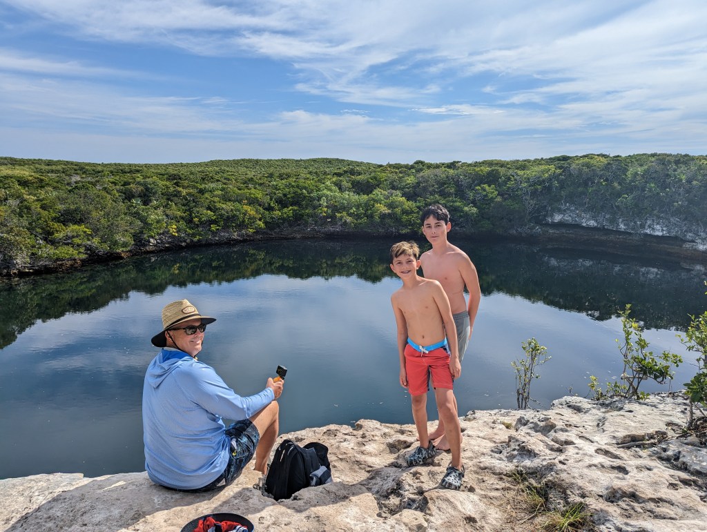 Hoffmans Cay was a lovely welcome back to the Bahamas… Crystal clear waters, beautiful beaches, secluded anchorages, and a lovely hike to a blue hole. We snorkeled in a bay where there are a lot of turtles and rays, the boys went spearfishing on a fairly healthy reef, they practiced on their new skim boards, and Tommy pulled them around with the dinghy.