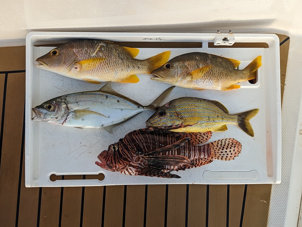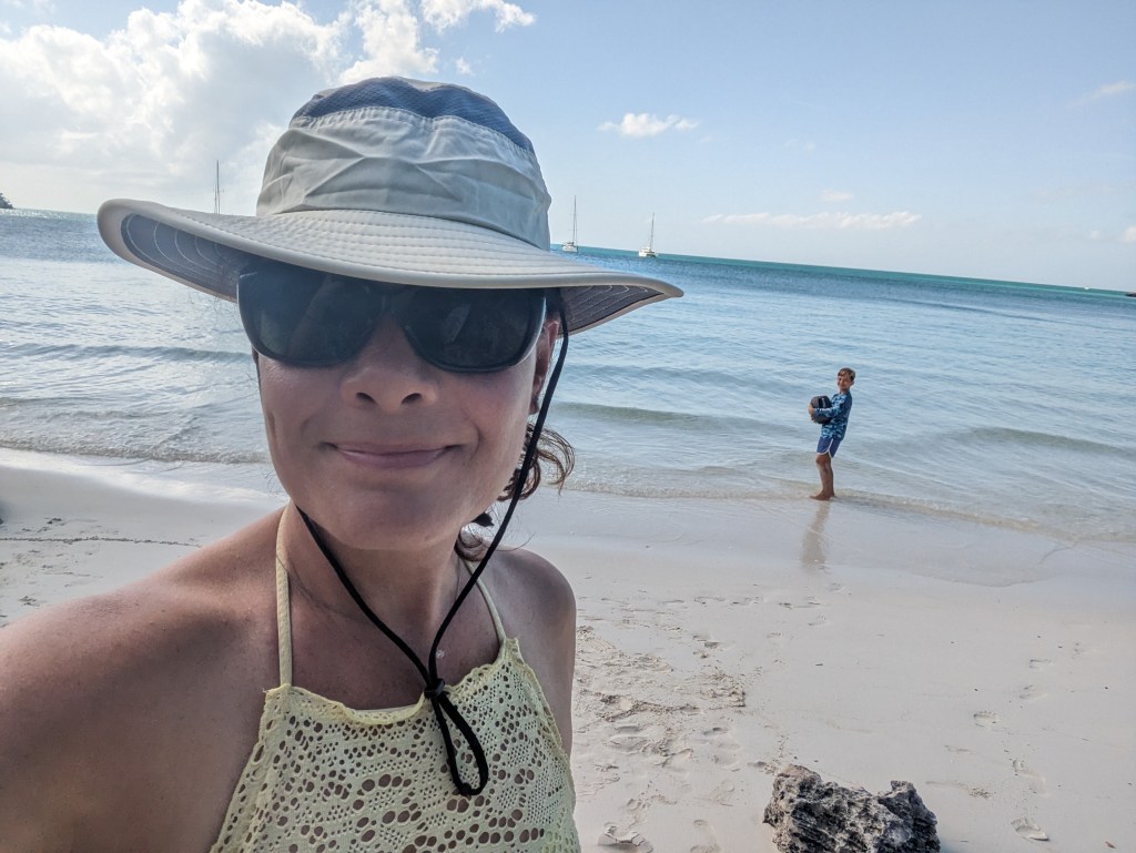 Shroud Cay is part of the Exumas Land and Sea Park which is a no-take zone. I paddleboarded to the beach with Spencer while Tommy and Jackson took the dinghy exploring. They left the Park boundaries where they were able to spear several fish, including a large invasive lionfish for dinner. The fish were really difficult to process and de-bone, plus there were a zillion scales on them. I keep joking that there will be scales turning up on the boat for months, maybe years…. Probably not worth it, even though dinner was pretty good.