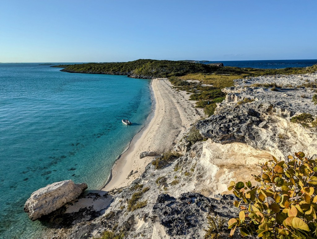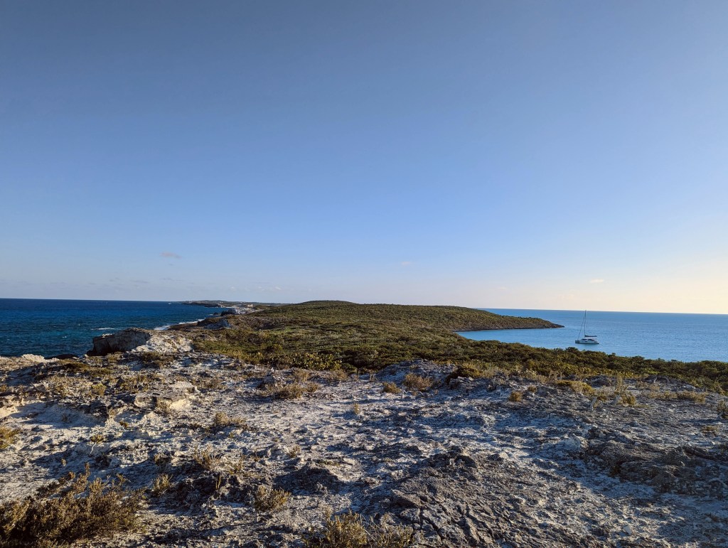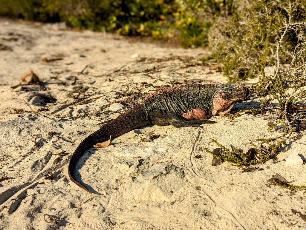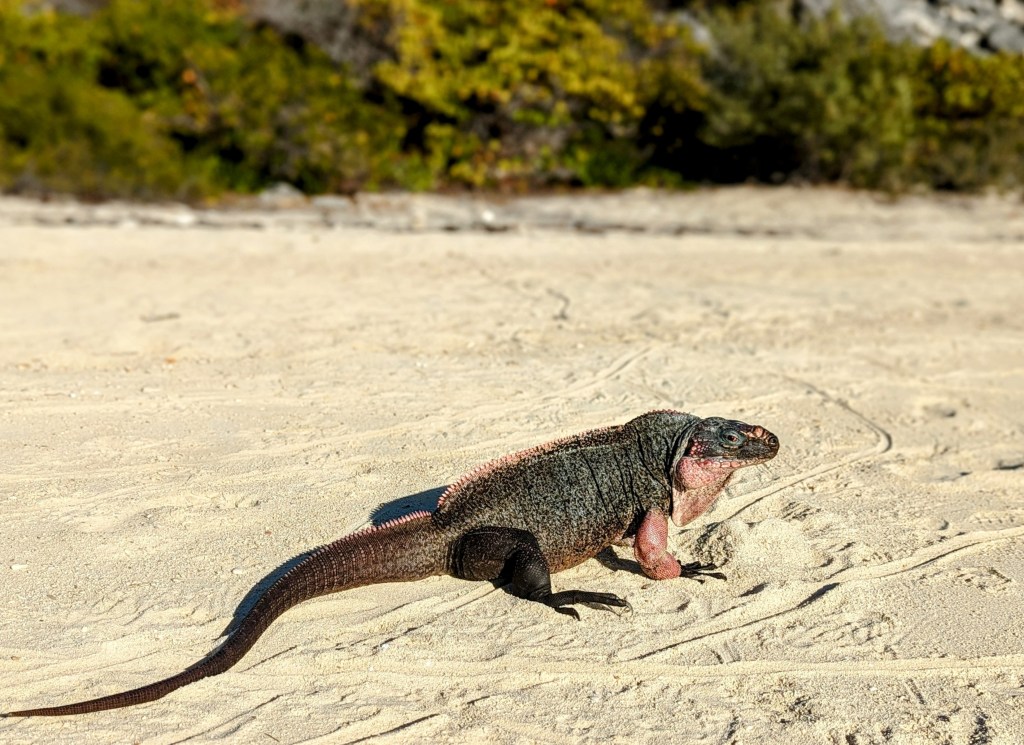 We were told by some other cruisers that Bitter Guana is one of their favorite islands, so we decided to check it out. Other than a mess of pink endangered iguanas, there are no other inhabitants. It was perhaps my favorite anchorage so far, because of its striking white cliffs and pristine water. There were only three boats including ours, and other than a picturesque hike over to the other side of the island and several beach hangouts with the iguanas, our stay was sweet, short, and uneventful.