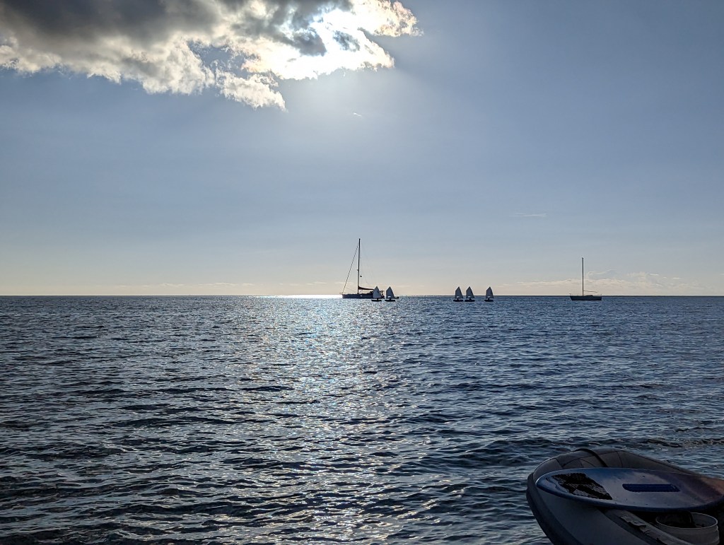 1. Sounds like things have relaxed and mellowed out. What a nice way to sail with friends around and a gentle breeze behind you. 🙏❤️