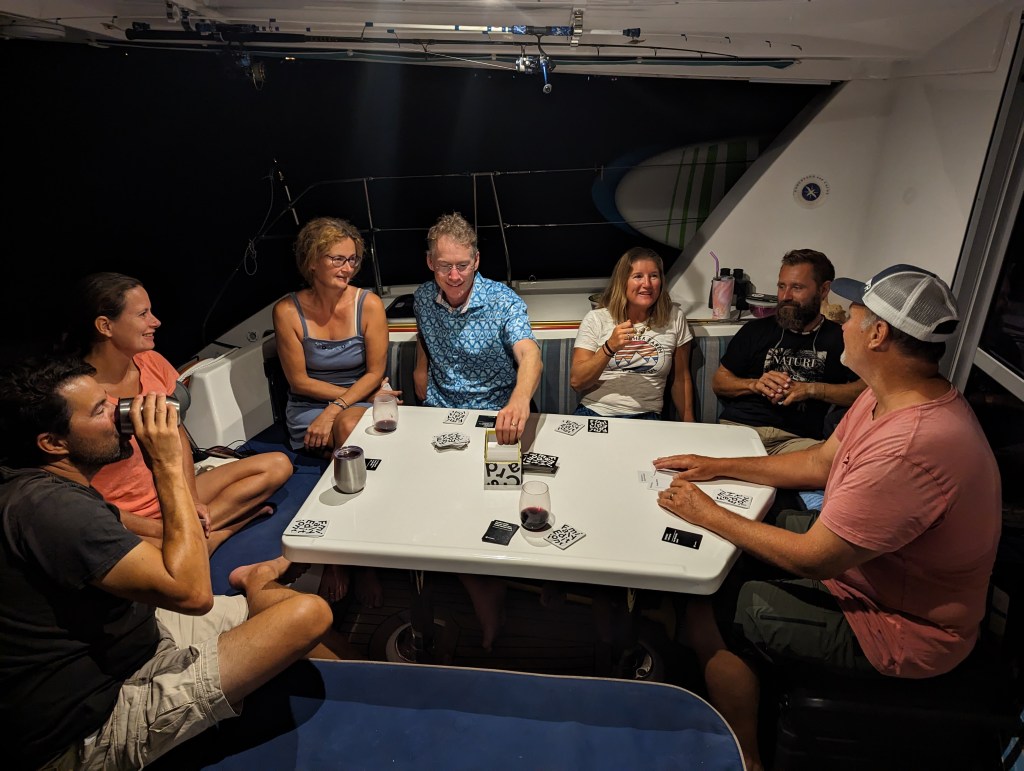 They call the islands around Puerto Rico and to the East the “Spanish Virgin Islands”. They’re actually part of PR. Our next stop was Vieques, which is one of those islands. We anchored in beautiful Sun Bay with a lovely sandy beach, next to the town of Esperanza, and enjoyed our time there. We walked into town with friends every day, and found lots of fun murals, funky artwork, and an interesting museum. We hosted our boat buddy group on our boat for dinner and games, ending the night with a hilarious round of Cards Against Humanity (family edition).