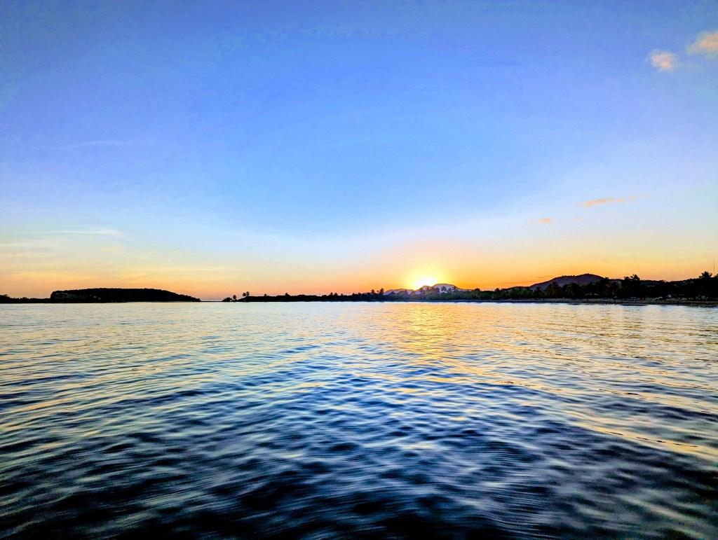 Sunset from our anchorage as we leave in the dinghy