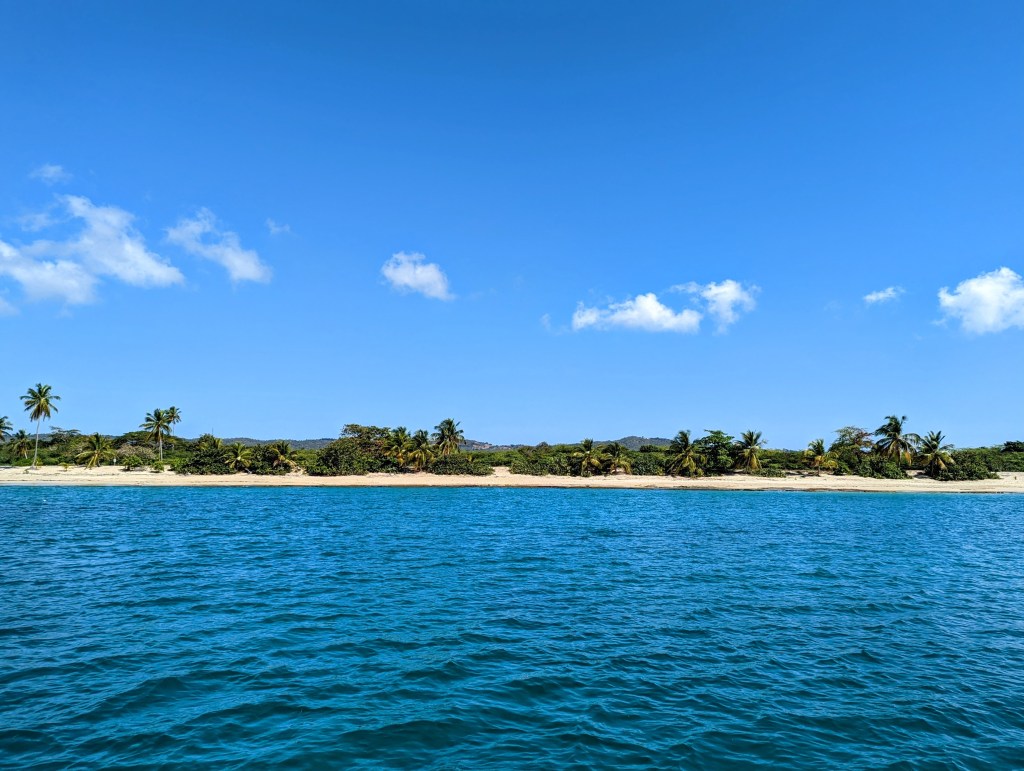 The highlight was Mosquito Bay, which is a bioluminescent bay known to be the brightest in the world. We left our anchorage in our dinghies at sunset, and arrived at the bay just as it was getting dark. Once you get into the channel to the bay, you have to cut your engines and paddle. It was absolutely stunning, and lived up to the hype! We were surprised to discover that it is almost impossible to get footage of the bioluminescence; there’s something about the way that it lights up against the black water that makes it very hard to capture. We were disappointed that some friends of our friends jumped in and swam in the bay, which is not allowed, and can damage the ecosystem. When we got back to our anchorage, we noticed that there was even bioluminescence in the water underneath our boat! Spencer and I spent time splashing around and it was pretty cool.
