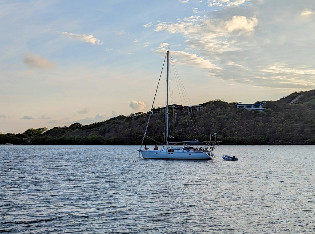We spent a day exploring with our friends in the dinghys, looking for a good snorkeling spot, but ended up in a bay that was rough with poor visibility. We moved to a cool little cove that had tons of coral rocks instead of sand, and some decent snorkeling, so we hung out there for a bit. I got a big coral scrape on my thigh when a wave pushed me into a coral bed. I scrubbed it and cleaned it with hydrogen peroxide but after it started healing it developed itchy red spots, and I had to wrap the scrapes and slather on antibiotic ointment for it to heal.