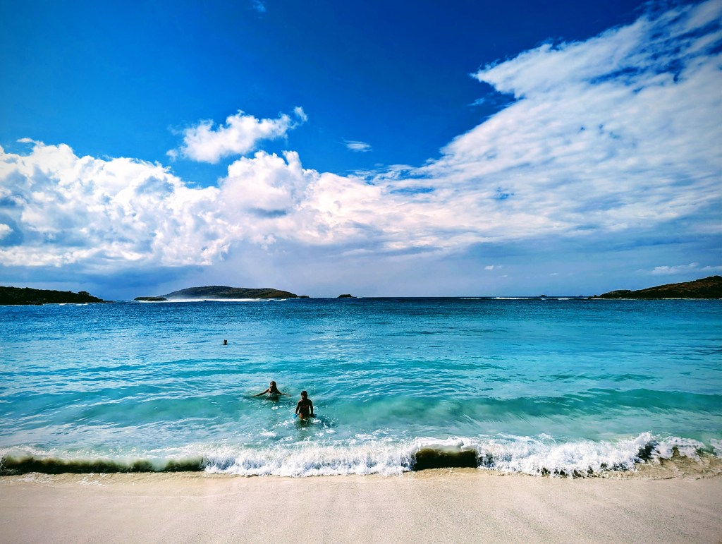 We left with two of our buddy boats to Culebrita, a small island east of Culebra. We tried to take our boats into an anchorage on the North side, but waves were breaking and crashing all over the entrance. Instead, we anchored in the west side for the day and hiked to the other anchorage where there was a spectacular beach, and the Monks Baths. Because of the wind and waves, the baths were very exciting. The boys and their friends got thrown around for hours, never tiring of the fun. At the end of a full day, we moved to a beautiful anchorage on the Southeast side of Culebra, which is protected by a reef that surrounds it. The other two women and I had happy hour in our front cockpit and the guys hung out on our friend’s bow while the kids pulled each other around on their skimboards with the dinghy.